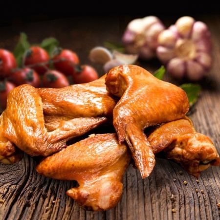 Состав: крылышки куриные, или крылышки цыплят, или крылышки цыплят-бройлеров, вода питьевая, комплексная пищевая добавка (регуляторы кислотности (Е451, Е450), загустители (Е407, Е415, Е1412), декстроза, животные белки, растительные волокна, усилитель вкуса и аромата Е621, антиокислитель Е316, агент желирующий Е508), соль пищевая йодированная (агент антислеживающий Е536), смесь посолочно-нитритная (соль, фиксатор окраски Е250, комплексная пищевая добавка (регуляторы кислотности (Е262, Е331), антиокислители (Е316, Е223), соль как носитель).