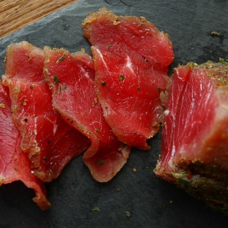 Состав: филе куриное, шпик хребтовой или боковой, смесь посолочно-нитритная (соль, фиксатор окраски Е250), соль поваренная пищевая йодированная (агент антислеживающий Е536), комплексная пищевая добавка (усилитель вкуса и аромата - глютамат натрия Е621, ароматизатор, соль), декстроза моногидрат, стартовые культуры (носитель: декстроза, чистые культуры бактерий).Готово к употреблению в пищу. Не требует тепловой обработки.Пищевая ценность: Белки- 27 г; Жиры - 59 г; Углеводы - 1 г.Энергетическая ценность в 100 г - 640/2600 кДж/ккал.