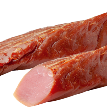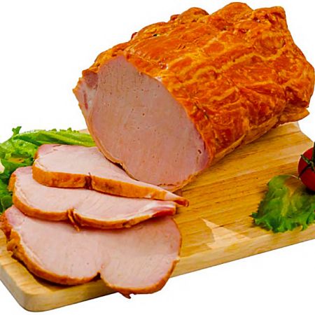 РЦ BY 790978259.016-2019 по ТУ ВУ 790261412.003-2009 Состав продукта: пояснично-подвздошная часть свиных полутуш жилованная, вода питьевая, комплексная пищевая добавка (регуляторы кислотности (Е451, Е450), загустители (Е407, Е415, Е1412), декстроза, животные белки, растительные волокна, усилитель вкуса и аромата Е621, антиокислитель Е316, агент желирующий Е508), соль пищевая йодированная (агент антислеживающий Е536), смесь посолочно-нитритная (соль, фиксатор окраски Е250), комплексная пищевая добавка (регуляторы кислотности (Е262, Е331), антиокислители (Е316, Е223), соль как носитель).Пищевая ценность: Белки- 19 г.; Жиры- 7 г.Энергетическая ценность в 100 г – 140 ккал (580 кДж). Условия хранения и срок реализации: 12 суток при температуре хранения (4±4)°C и ОВВ 70-80%; упакованные в пленку (пакеты) полимерные многослойные под вакуумом (без нарушения целостности упаковки) - 40 суток при температуре хранения (4±4)°C, при нарушении целостности упаковки 12 суток при температуре хранения (4±4)°C , но не более общего срока реализации.