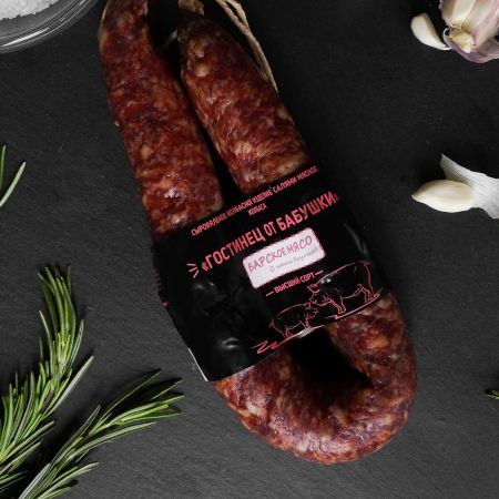 Состав продукта: свинина жилованная полужирная и/или котлетная, вода питьевая, соль поваренная пищевая йодированная (агент антислеживающий Е536), комплексная пищевая добавка (регулятор кислотности Е451), комплексная пищевая добавка (регуляторы кислотности (Е262, Е331), антиокислители (Е316, Е223), соль как носитель), кориандр молотый, перец черный молотый, тмин молотый, чеснок сушеный дробленый.
