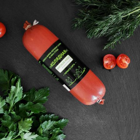 Состав: мясо птицы механической обвалки, вода питьевая, мясо птицы кусковое, шпик боковой, жир-сырец говяжий, картофельный крахмал, смесь посолочно-нитритная (соль, фиксатор окраски Е250), соль поваренная пищевая йодированная (агент антислеживающий Е536), комплексная пищевая добавка (загустители (каррагинан Е407, гуаровая камедь Е412, ксантановая камедь Е415, конжак Е425), антислеживающий агент Е508), комплексная пищевая добавка (регулятор кислотности Е451, усилитель вкуса и аромата – глутамат Е621, антиокислитель Е300, натуральные экстракты специй (перец мускатный, орех, кориандр), натуральный ароматизатор – ветчина, антислеживающий агент Е551), комплексная пищевая добавка (уплотнитель Е516, яичный порошок белого цвета, загустители Е415, Е410), вещество вкусоароматическое натуральное (декстроза, мальтодекстрин, дрожжевой экстракт), комплексная пищевая добавка (мальтодекстрин, соль, краситель Е120, растительное масло).