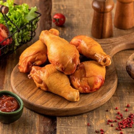 Состав: часть тушки птицы - голень, вода питьевая, комплексная пищевая добавка (сахар, кукурузный крахмал, соль, ароматизаторы (натуральные вкусоароматические препараты (содержит ячмень)), сушеные овощи (помидоры, чеснок), загуститель (Е412), подсолнечное масло, коптильный ароматизатор, специи (чили, гвоздика, тмин, орегано), краситель Е160с), масло подсолнечное рафинированное, комплексная пищевая добавка (регуляторы кислотности (Е331, Е451) стабилизатор (Е452), загуститель (Е415), сахара) соль пищевая поваренная йодированная (агент антислеживающий Е536).