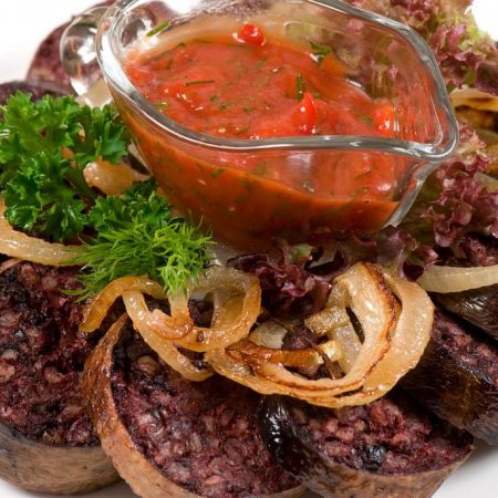 Состав продукта: печень свиная, мясо птицы механической обвалки, шпик свиной, вода питьевая, крупа гречневая, жир-сырец свиной, шкура свиная, лук сушеный, КПД (свиной белок (гемоглобин), декстроза, антиокислитель (Е316), соль поваренная пищевая йодированная (агент антислеживающий (Е536)), КПД (декстроза, специи и экстракты специй (душистый и белый перец, чеснок), ароматизатор (печень, хлопья жареного лука), усилитель вкуса и аромата (Е621), животный белок говяжий коллагеновый), КПД (регуляторы кислотности (Е262, Е331), антиокислители (Е316, Е223), соль)