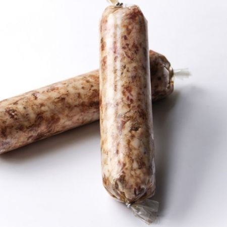 Состав: свинина жилованная полужирная, вода, смесь посолочно-нитритная (соль, фиксатор окраски Е250), соль йодированная (агент антислеживающий Е536), комплексная пищевая добавка (усилитель вкуса - глютамат натрия Е621, ароматизатор, перец, лук, антиокислитель - эриторбат натрия Е316, чеснок, соль, гидролизованный растительный белок, гидрогенизированные растительные жиры), регулятор кислотности Е451, декстроза моногидрат. Пищевая ценность: белки -13 г; жиры - 51 г. Энергетическая ценность в 100 г - 2110кДж/510 ккал. Не требует тепловой обработки, готов к употреблению.